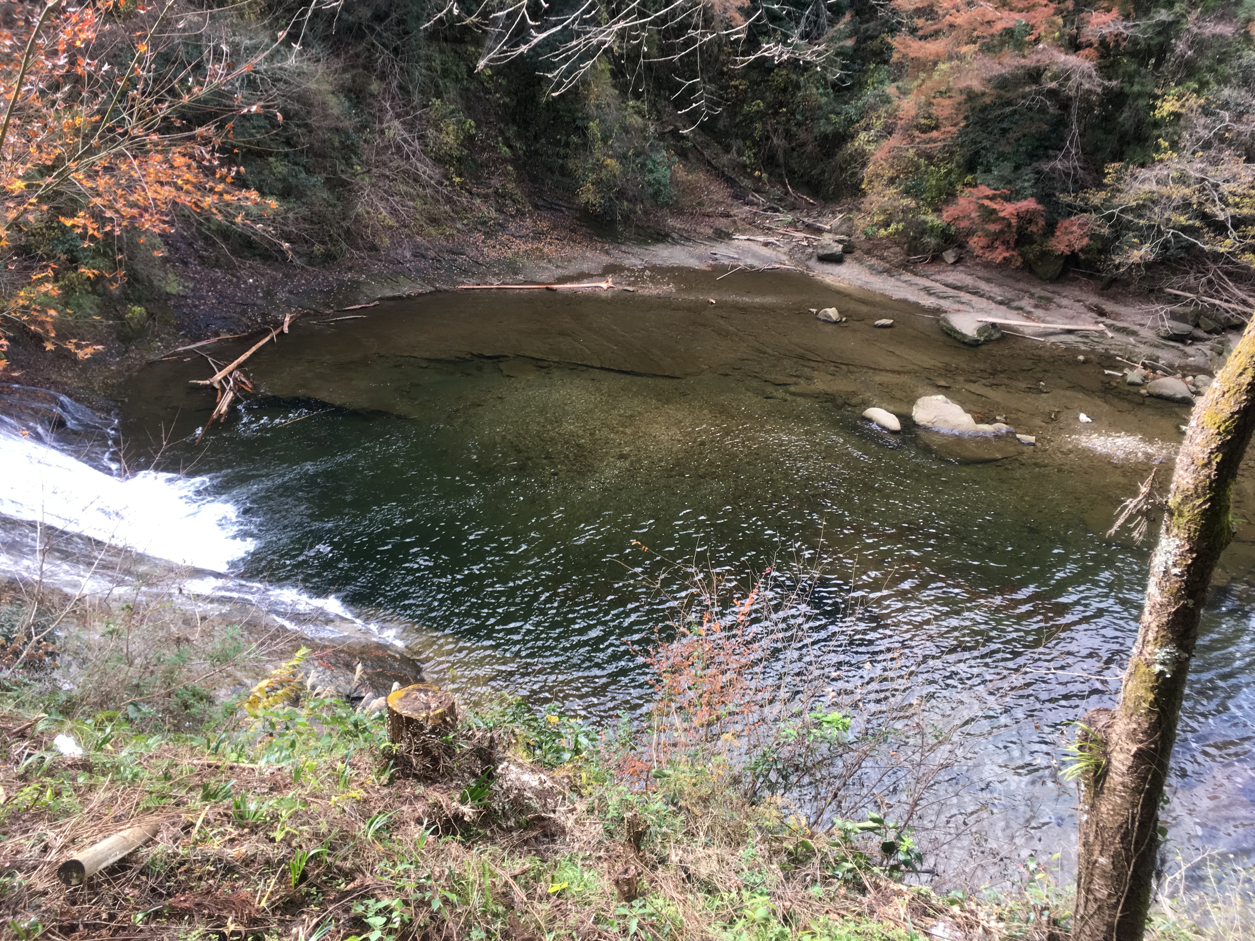 このあたり コメントを残す 滝壺、超深い。 水の流れだけでこの地形の成り立ちは説明できないんだよな。 断層の様子が判って趣深い。 地層年代の話もあながち外れてないのかな、なんて思ったりする。 いずれにしても相当に長い年月を経ないとこんな場所にはならないだろうし。