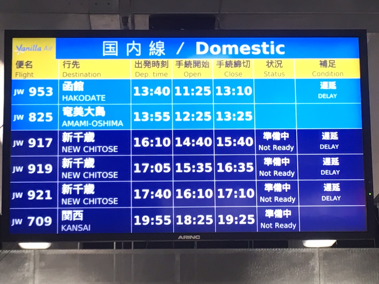 現時点で16:25案内開始のアナウンス。 16:55発予定だよなー。