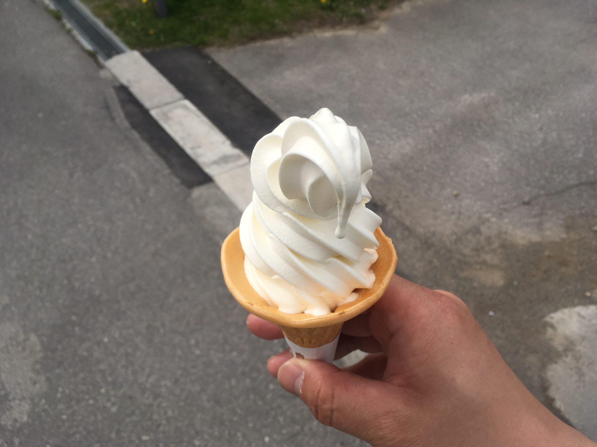 ソフトクリームも溶けてしなだれてる。
